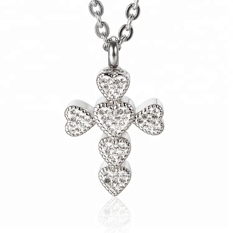 Venta al por mayor de acero inoxidable cremación joyería hueco corazón Cruz urna cenizas colgante collar