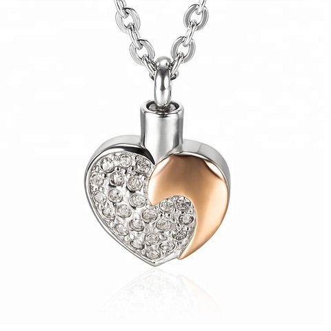 Venta al por mayor de acero inoxidable 18K chapado en oro corazón cremación colgante cenizas recuerdo urna collar