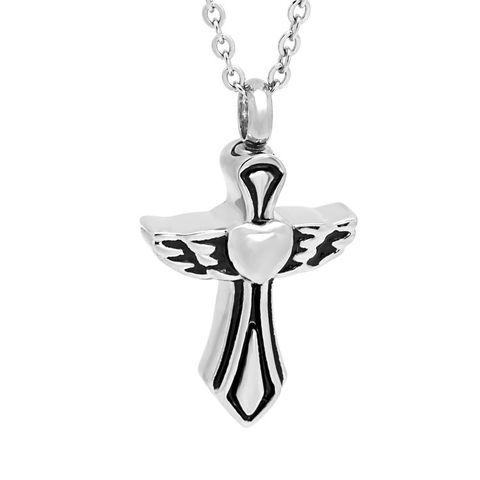 Collar de recuerdo en forma de cruz de Marlary, colgante de Cruz de cremación de cenizas, joyería de ala cruzada, joyería de cremación de acero inoxidable